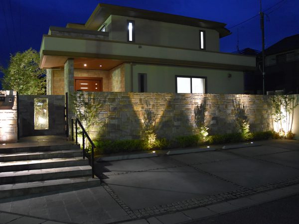 完全なプライベート空間をご要望されたお客様に、塀を高くしたエクステリアをご提案しました。